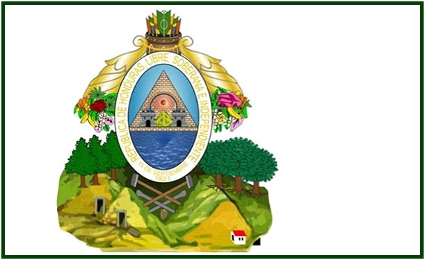 El escudo de armas de Honduras, arriba, presenta un