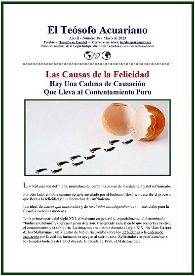 Acá está el “Acuariano” de mayo. En la página uno vemos “Las Causas de la Felicidad”, que examina un hecho poco conocido: hay una cadena de causación que lleva al Contentamiento puro.
