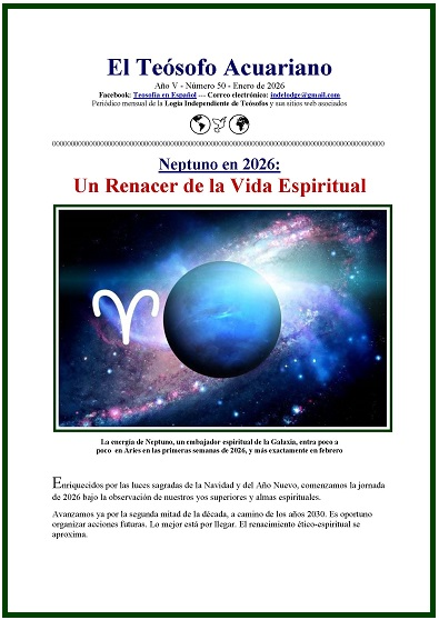 En la página uno del Acuariano de Enero tenemos “Neptuno en 2026: Un Renacer de la Vida Espiritual”. La energía de Neptuno, un embajador espiritual de la Galaxia, entra poco a poco en Aries en las primeras semanas de 2026, y la fuerza cósmica superior abre silenciosamente una nueva etapa en nuestras vidas.