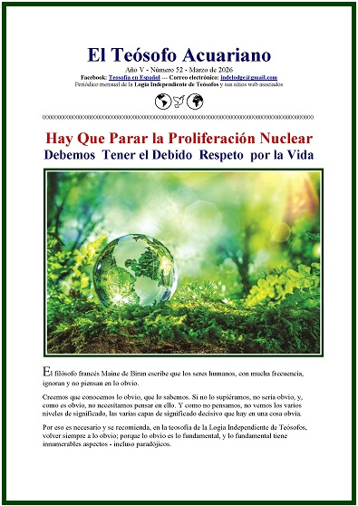 La página uno del Acuariano de marzo presenta “Hay Que Parar la Proliferación Nuclear”. Debemos Tener el Debido Respeto por la Vida.