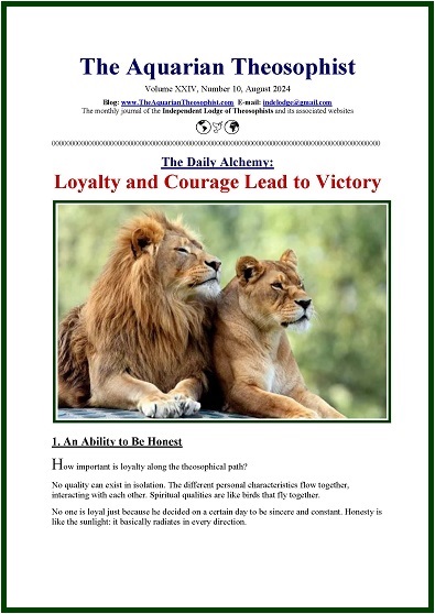 The August 2024 edition of the Aquarian Theosophist starts with the article “The Daily Alchemy: Loyalty and Courage Lead to Victory”.