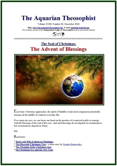 On the front page of the December edition of the Aquarian we have the note “The Advent of Blessings”.