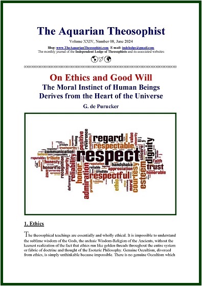 On page one, the June edition of The Aquarian presents a superb classic text by Gottfried de Purucker: “On Ethics and Good Will”. The moral instinct of human beings derives from the heart of the universe.