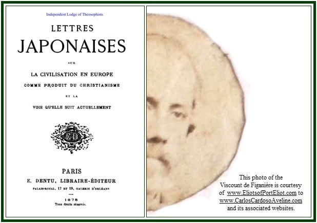 * The Viscount of Figanière (1827-1908), a personal student of Ms. Blavatsky, left an occult gift to the generations of theosophists coming after him. He left his book “Lettres Japonaises” (139 pp.), which makes a severe examination of modernity in the West and discusses its misguided love of falsity. The volume praises the positive aspects of the Middle Ages.[1]